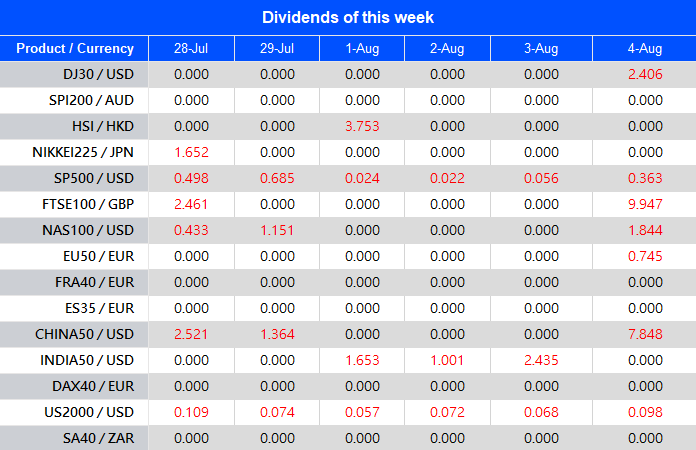 Warmly reminds you that the component stocks in the stock index spot generate dividends. When dividends are distributed, VT Markets will make dividends and deductions for the clients who hold the trading products after the close of the day before the ex-dividend date.