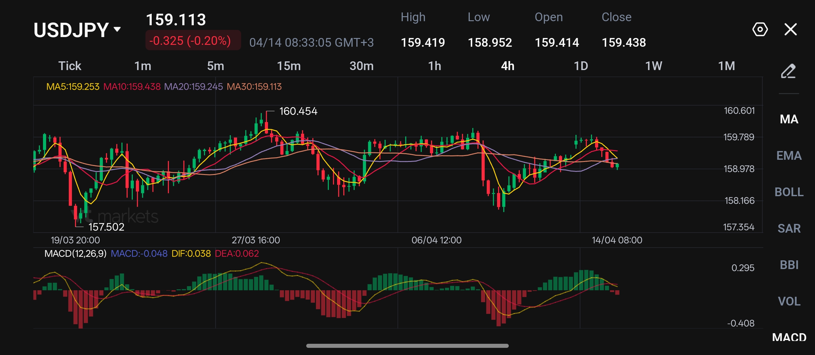 Support: Traders are closely watching the 159.00 psychological mark. A sustained break below this level could open the door for a deeper correction toward March lows.
