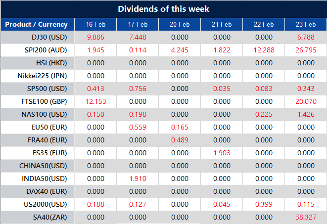 Please note that the dividends of the following products will be adjusted accordingly. Index dividends will be executed separately through a balance statement directly to your trading account, and the comment will be in the following format “Div & Product Name & Net Volume ”.