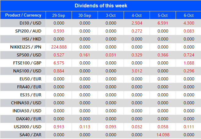Warmly reminds you that the component stocks in the stock index spot generate dividends. When dividends are distributed, VT Markets will make dividends and deductions for the clients who hold the trading products after the close of the day before the ex-dividend date.