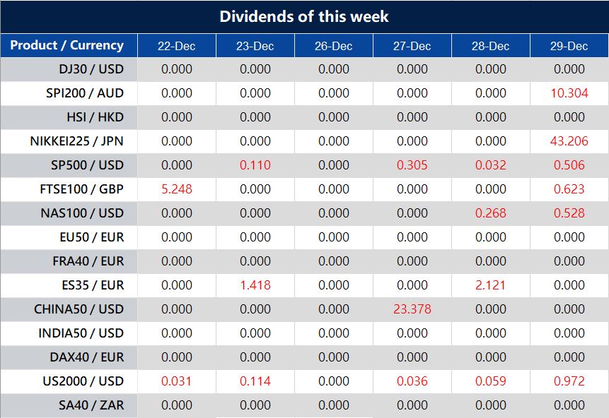 Please note that when constituent stocks of a market index generate dividends, VT Markets will make dividends and deductions for clients who hold the products after the close of the day before the ex-dividend date.