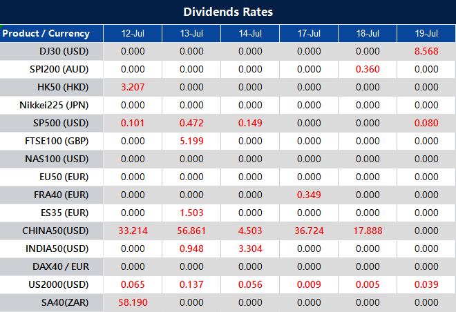 Please note that the dividends of the following products will be adjusted accordingly. Index dividends will be executed separately through a balance statement directly to your trading account, and the comment will be in the following format “Div & Product Name & Net Volume ”.