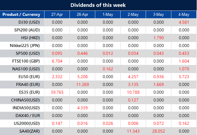 Please note that the component stocks in the stock index spot generate dividends. When dividends are distributed, VT Markets will make dividends and deductions for the clients who hold the trading products after the close of the day before the ex-dividend date.