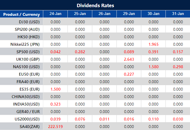 Please note that the dividends of the following products will be adjusted accordingly. Index dividends will be executed separately through a balance statement directly to your trading account, and the comment will be in the following format “Div & Product Name & Net Volume ”.