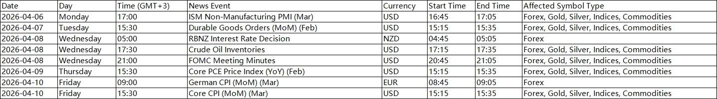 All dates and times are stated in GMT+3 (MT4/MT5 server time).