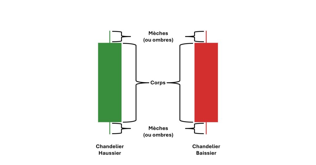 Les mèches (ou ombres) : Représentent les prix les plus élevés et les plus bas au cours de la période.