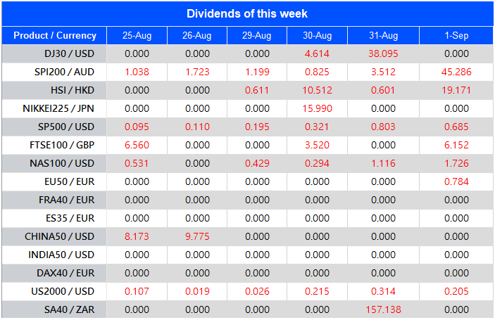 Warmly reminds you that the component stocks in the stock index spot generate dividends. When dividends are distributed, VT Markets will make dividends and deductions for the clients who hold the trading products after the close of the day before the ex-dividend date.