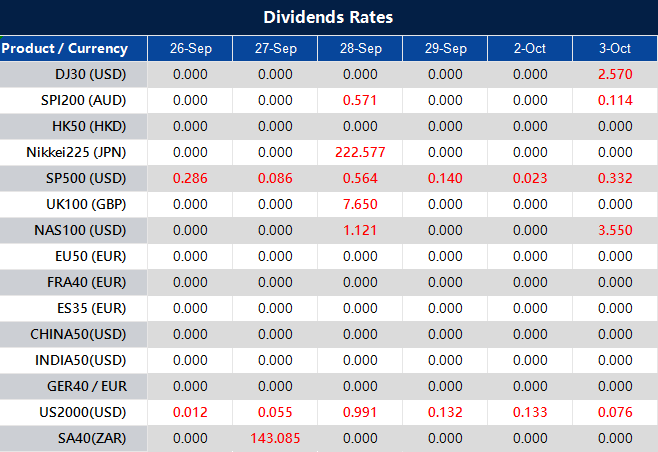 Please note that the dividends of the following products will be adjusted accordingly. Index dividends will be executed separately through a balance statement directly to your trading account, and the comment will be in the following format “Div & Product Name & Net Volume ”.