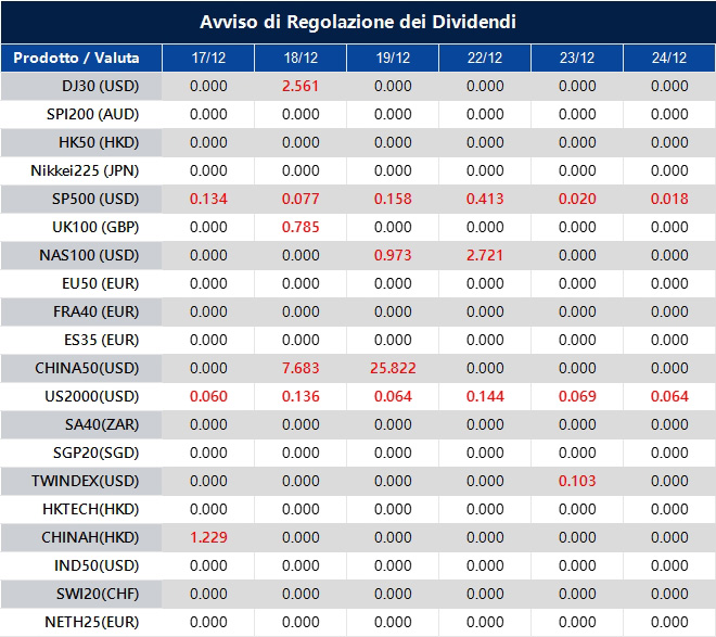 Si prega di notare che i dividendi dei seguenti prodotti verranno regolati di conseguenza. I dividendi sugli indici verranno eseguiti separatamente tramite un estratto conto direttamente sul tuo conto di trading e il commento seguirà il seguente formato: “Div & Nome del Prodotto & Volume Netto”.