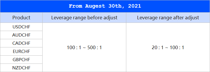 VT Markets Notification of leverage Reduce on CHF pairs
