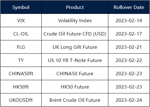 • Positions that are open on the expiration date will be adjusted via a rollover charge or credit to reflect the price difference between the expiring and new contracts.