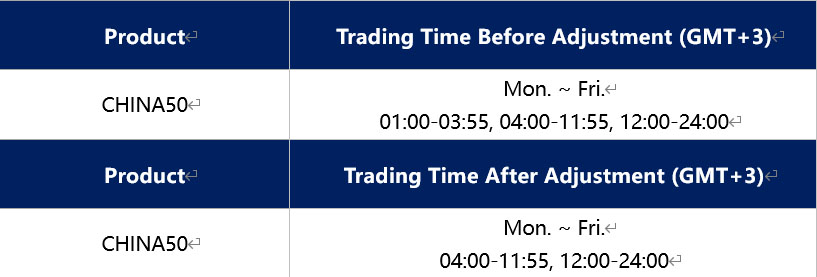 To provide a better trading environment in accordance to the market condition, VT Markets will adjust the trading time of CHINA50 on September 18th, 2023.