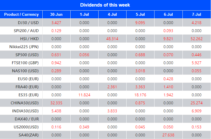 Warmly reminds you that the component stocks in the stock index spot generate dividends. When dividends are distributed, VT Markets will make dividends and deductions for the clients who hold the trading products after the close of the day before the ex-dividend date.