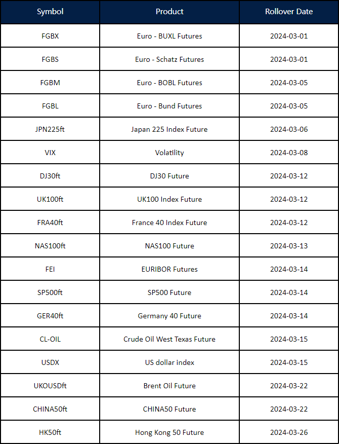 • To avoid CFD rollovers, clients can choose to close any open CFD positions prior to the expiration date.