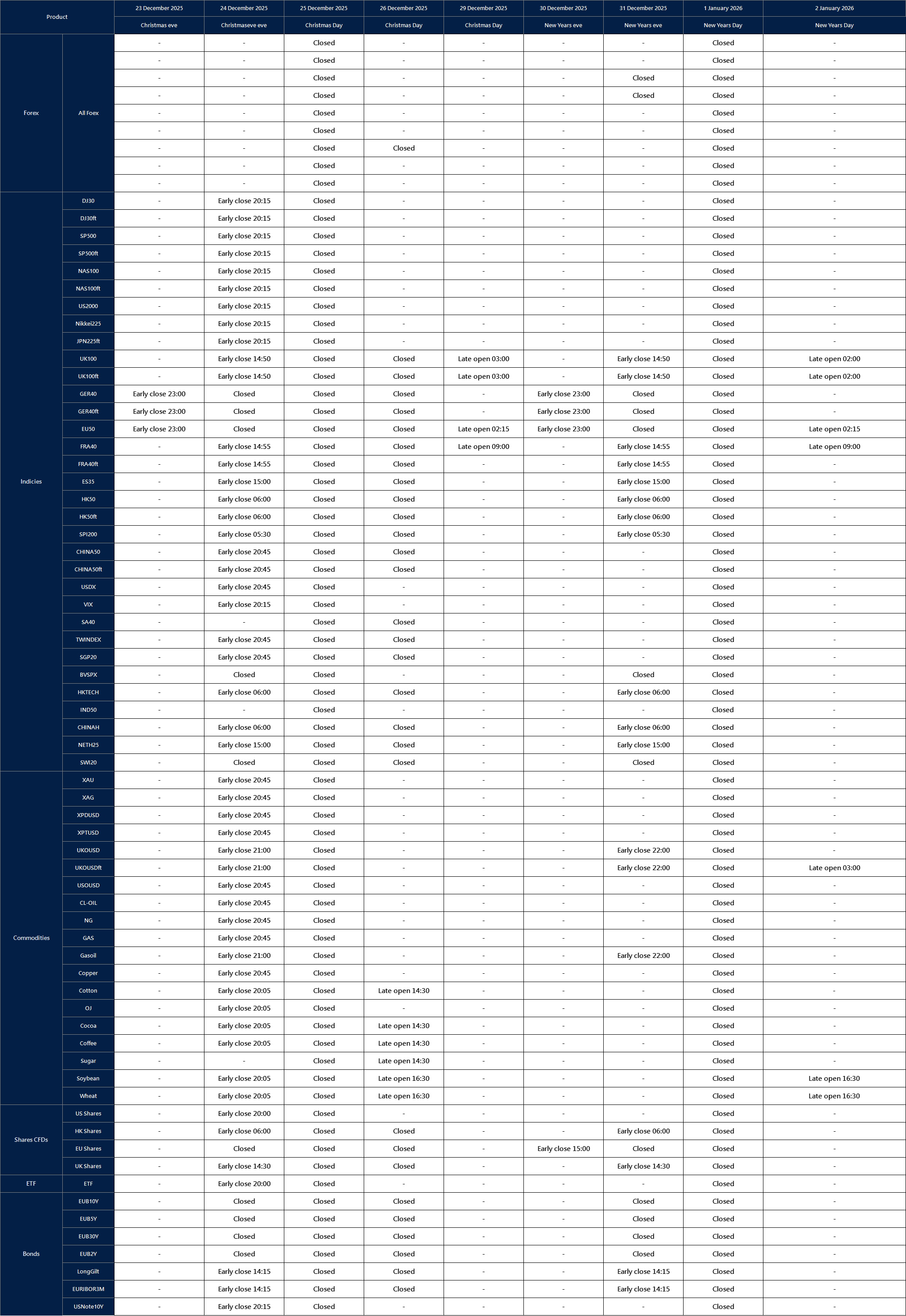 Affected by international holidays, the trading hours of some VT Markets products will be adjusted. Please check the following link for the affected products: