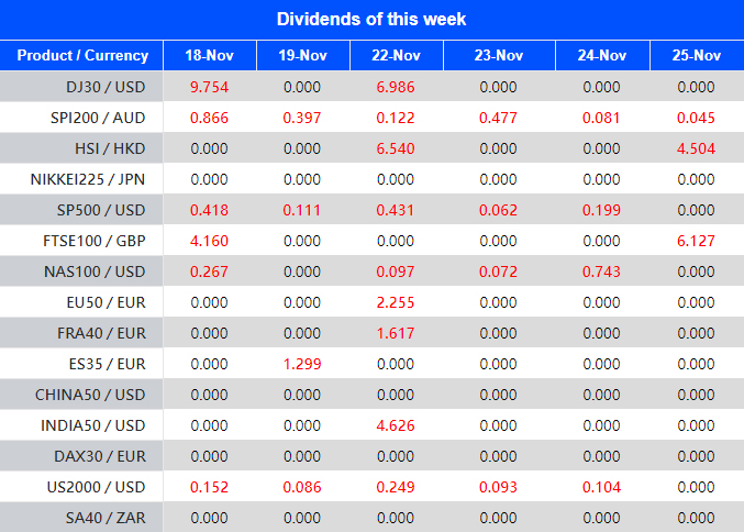 Warmly reminds you that the component stocks in the stock index spot generate dividends. When dividends are distributed, VT Markets will make dividends and deductions for the clients who hold the trading products after the close of the day before the ex-dividend date.