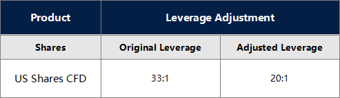 1. All US Shares products leverage will be adjusted to 20:1 .